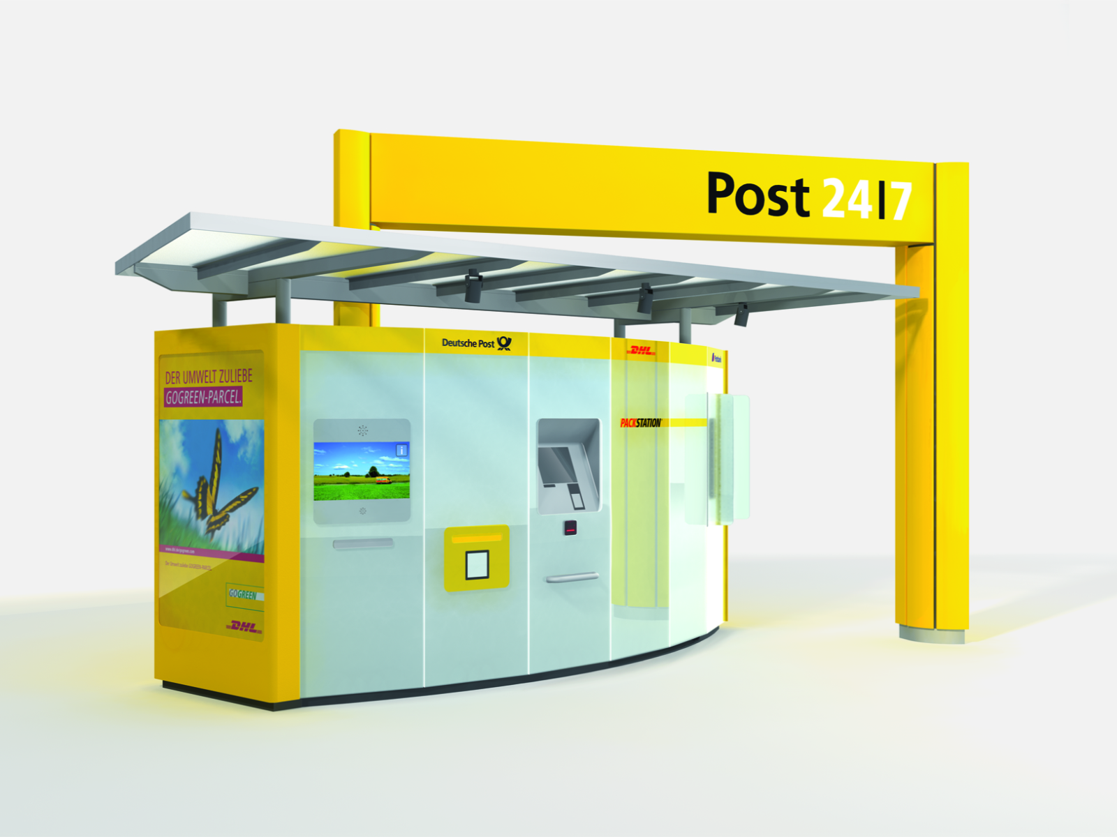 Integration of services from Deutsche Post, DHL, and Postbank into a 24/7 service platform with high location flexibility